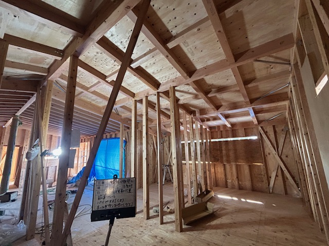 屋根断熱+通気工法+化粧杉野地張りの様子 ↓