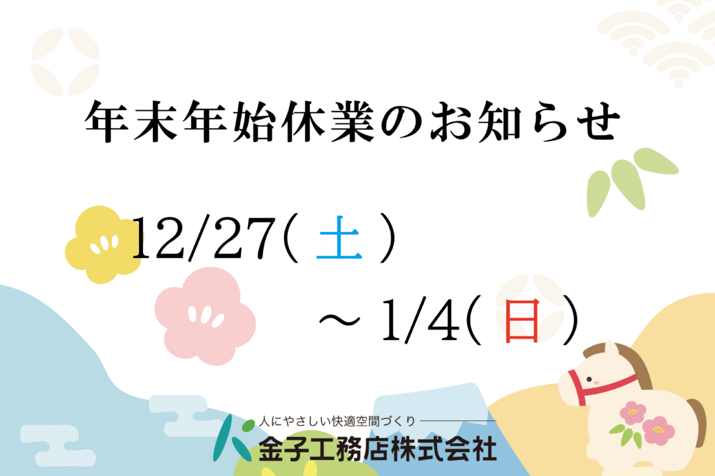 12月27日(土)~1月4日(日)まで年末年始休業とさせていただきます。1月5日(月)から通常営業いたします。 なおホームページからのお問い合わせ、イベントなどの来場予約につきましては、 休業明けに順次対応させていただきます。ご迷惑をおかけいたしますが、何卒ご了承くださいますようお願い申し上げます。 2026年もご愛顧賜りますようお願い申し上げます。