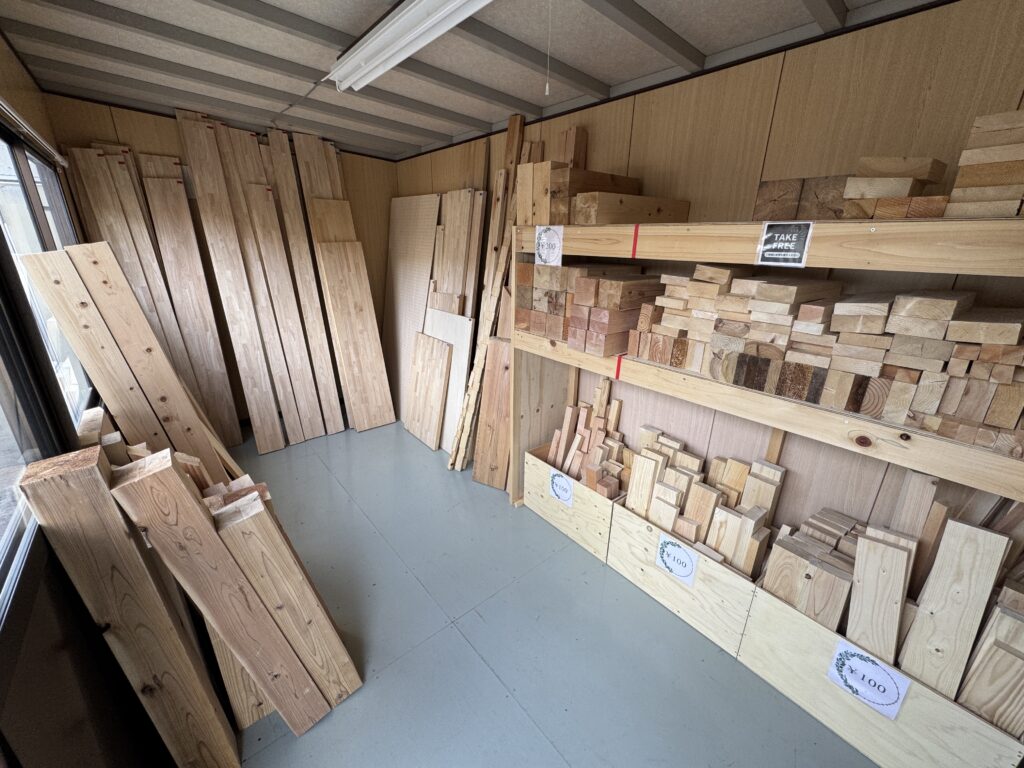 2026年4月18日(土)から金子工務店本社工場横で、端材販売所「木サイクルBOX」がOPENしました。